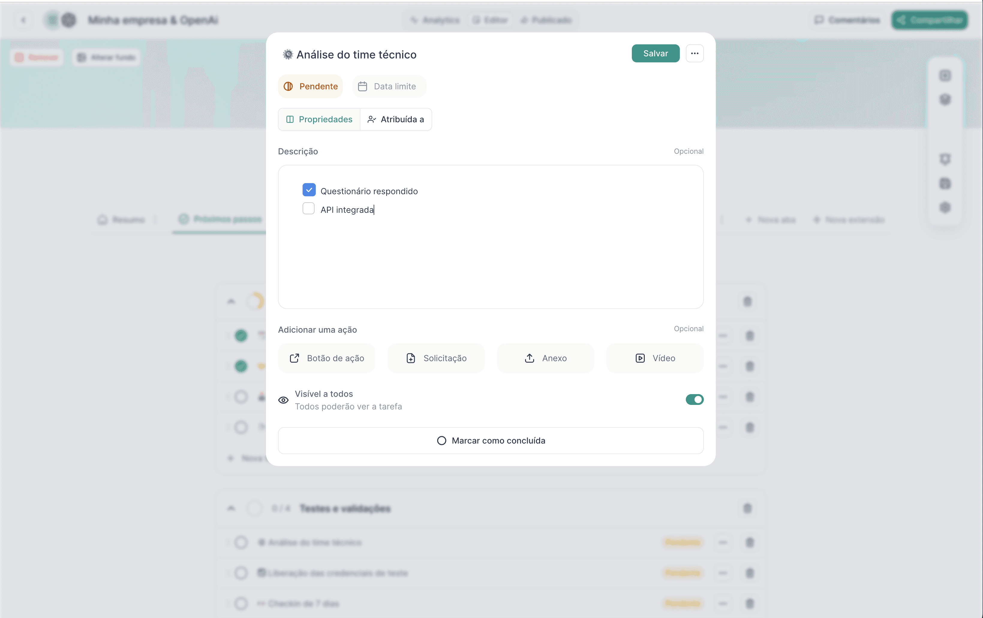 Atribua ações dentro das tarefas como redirecionamento de URL, solicitação de arquivos, anexos e mais.